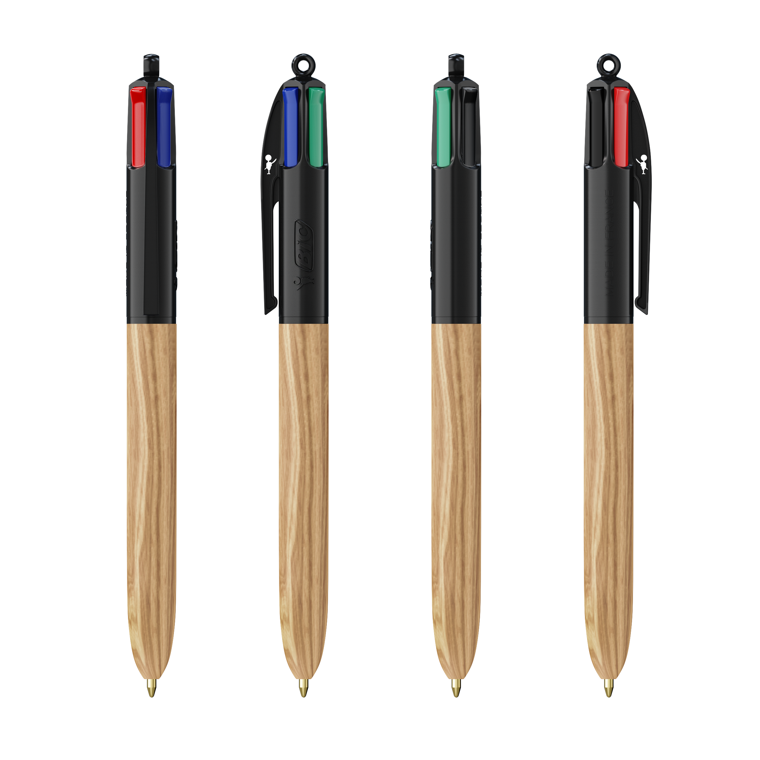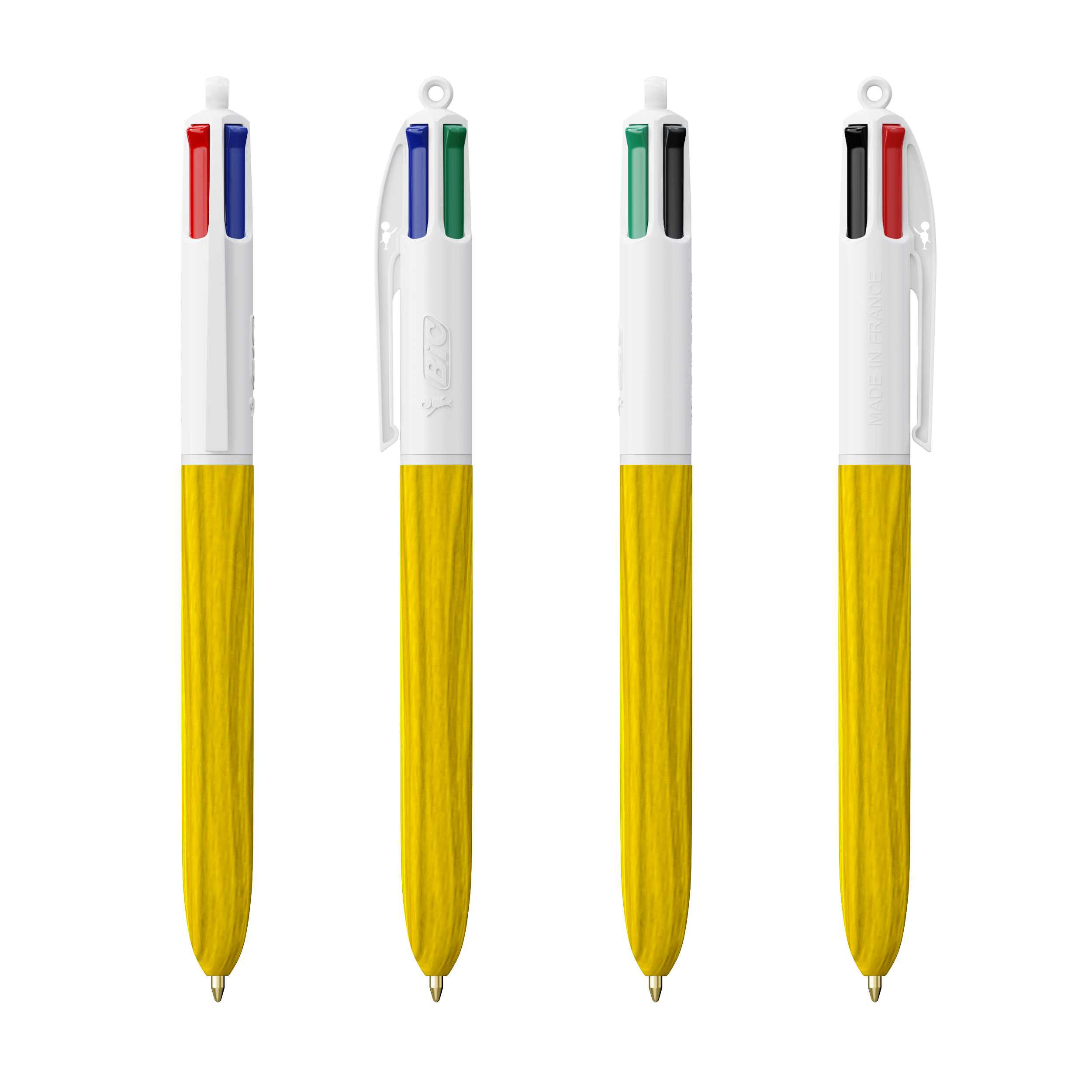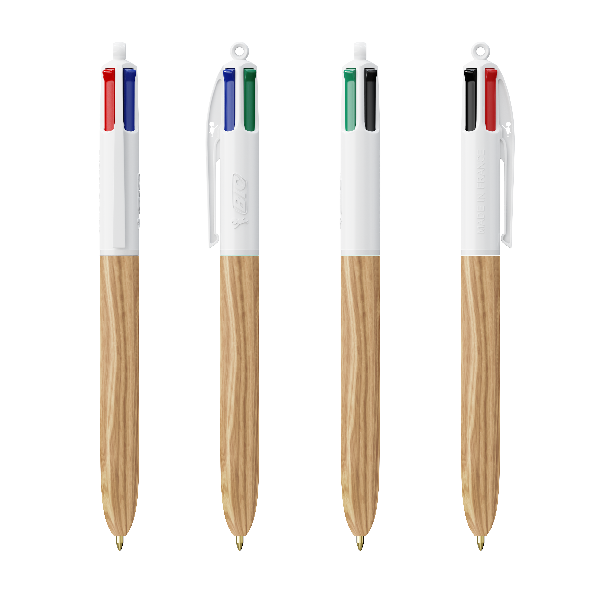 Notre stylo à bille iconique BIC® 4 Couleurs avec un effet bois. Laissez-vous impressionner par cette finition spectaculaire ! Notre emblématique BIC® 4 Couleurs® devient plus durable, avec désormais 13 % de plastique en moins dans la partie supérieure !