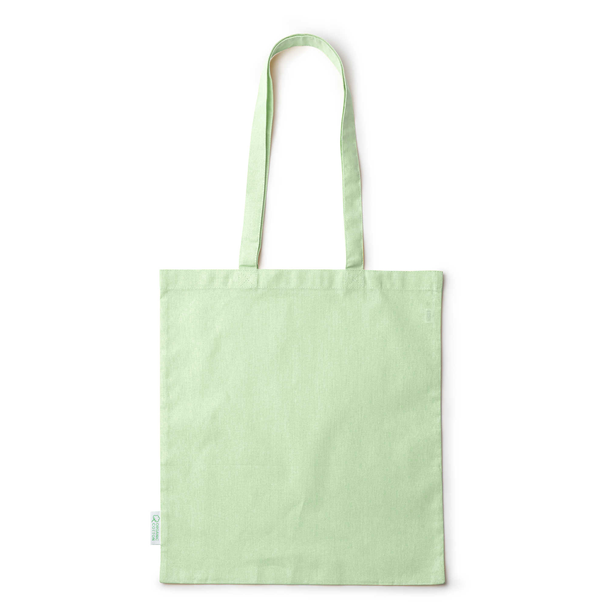 Sac Tote bag 100 % coton biologique (140 g/m ²), avec poignées renforcées de 70 cm de long.