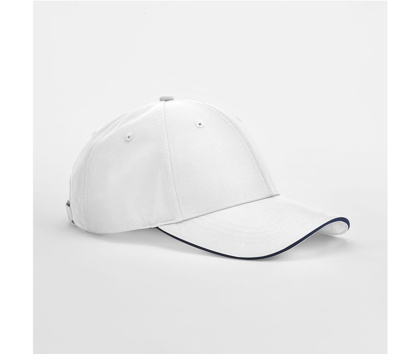 Bande de propreté en coton. 6 panneaux. Visière courbée avec liseré contrasté. Œillets cousus. Fermeture par boucle. Tour de tête : 58cm. Visière en polyéthylène recyclé, un matériau résistant, léger et flexible. Le polyester recyclé utilisé correspond à 7/8 bouteille(s) de 500ml.