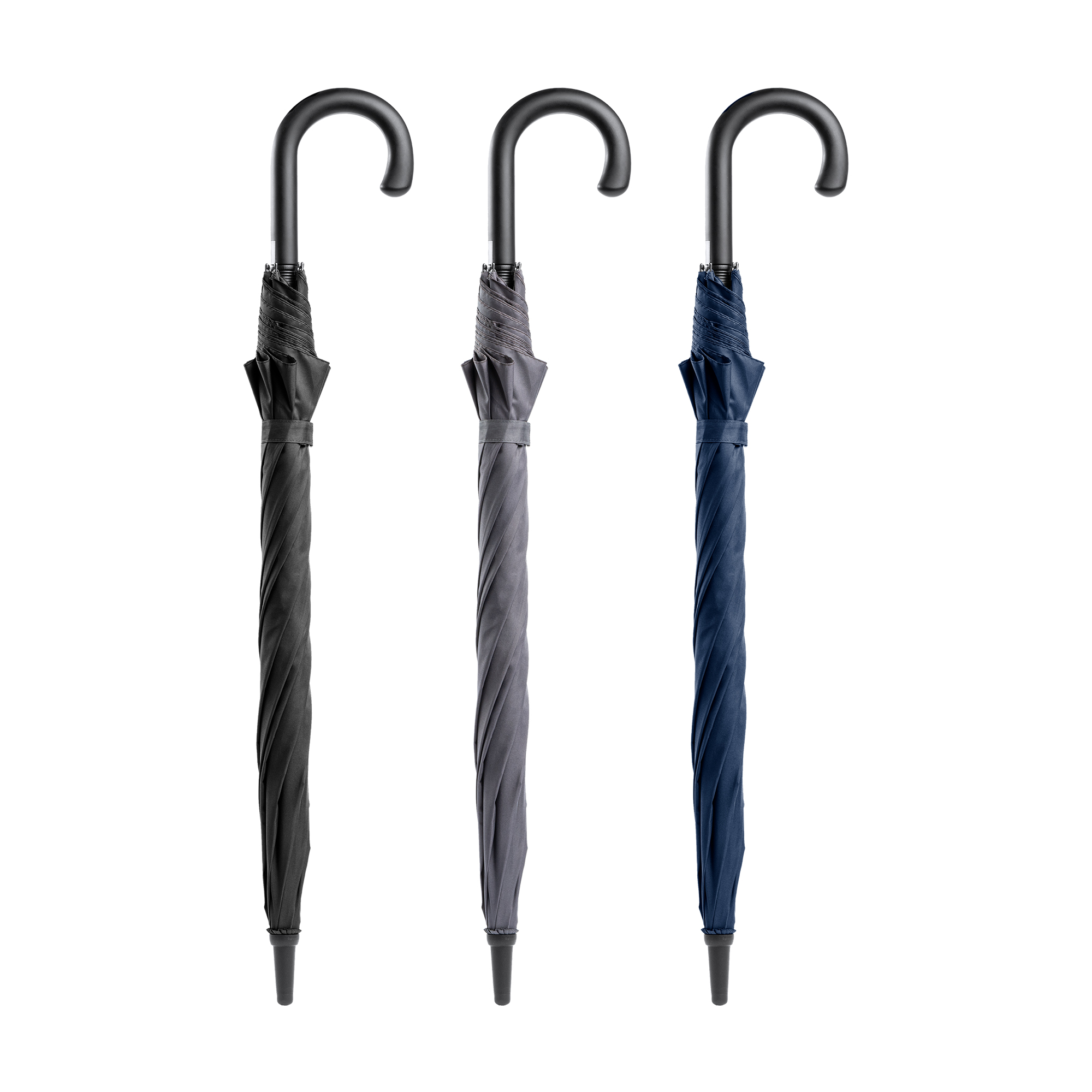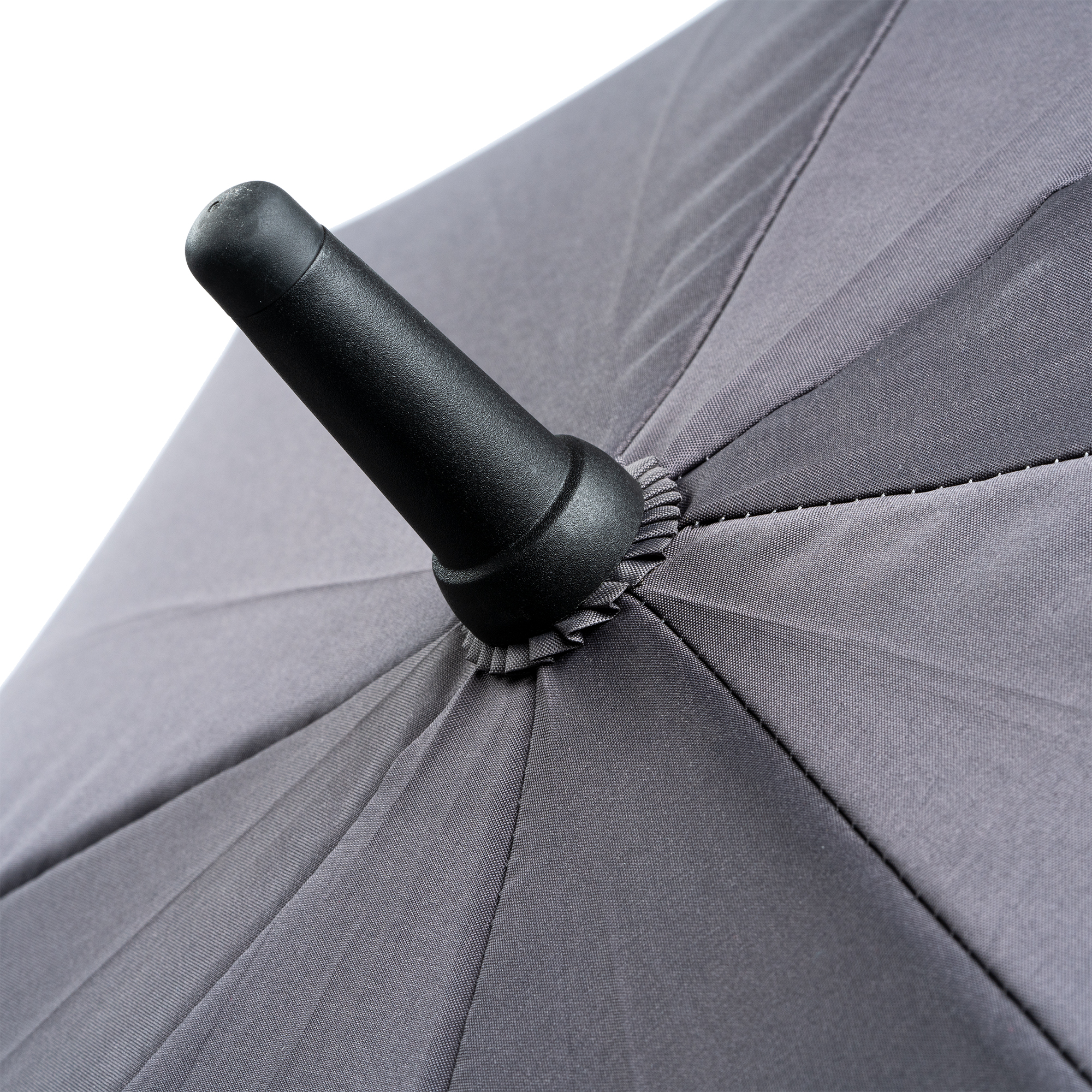 Parapluie avec poignée douce au toucher. Ouverture automatique. Baleines en fibre de verre coupe-vent et pointes renforcées.